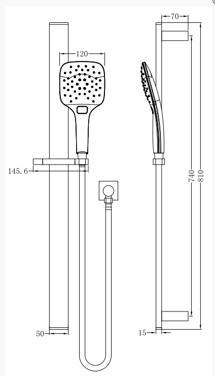 Aquaperla Square Sliding Shower Rail with 3 Mode Handheld Shower Wall Connector Set